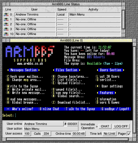 ArmBBS was originally written by Keith Hall, so a massive thank you is due to him for allowing